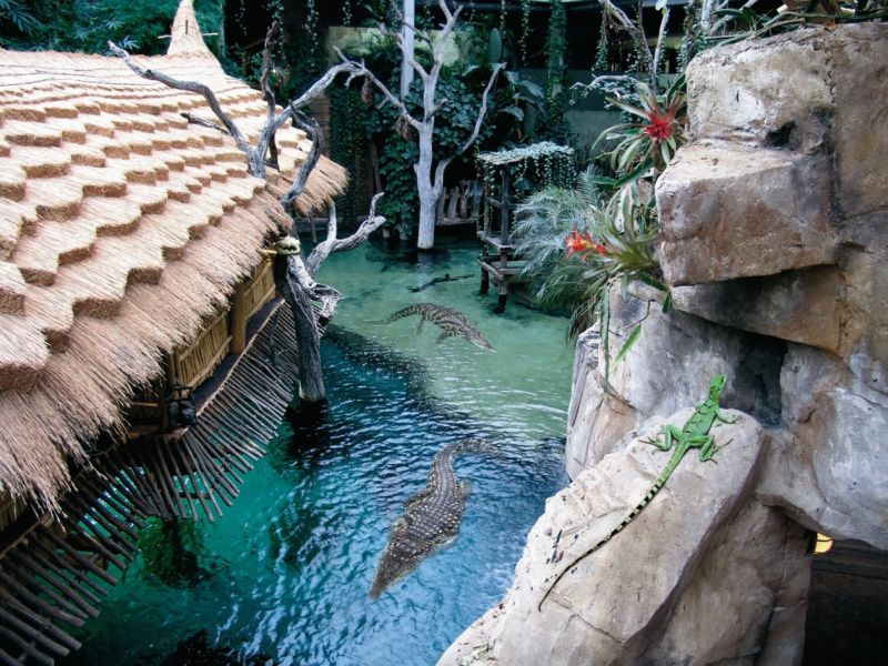 Die längsten Riesenschlangen der Erde und die kleinsten Verwandten der Elefanten sind hier zu finden. Der Krokodilsee ist mit einer Größe 350 Quadratmetern und einem Fassungsvermögen von 400.000 Litern der Größte Deutschlands und wird von mächtigen Nilkrokodilen bewohnt. Eine Panoramascheibe unterhalb des Wasserspiegels bietet die zusätzliche Möglichkeit die Tiere in ihrem nassen Element zu beobachten. Auch die Blattschneiderameisen erlauben einen Blick in ihre normalerweise unterirdischen Wohnkammern. Über einen Stollengang geht es in eine Höhlenwelt, die von Fledermäusen, Blinden Höhlenfischen, Geißelspinnen und Querzahnmolchen bewohnt wird. Im Giftschlangendorf lauern die gefährlichsten Schlangen, wie die Grüne Mamba oder auch die Gabunviper. Auch eine Königskobra, die mit einer Länge von über vier Metern die größte Giftschlange der Erde ist, lebt hier.